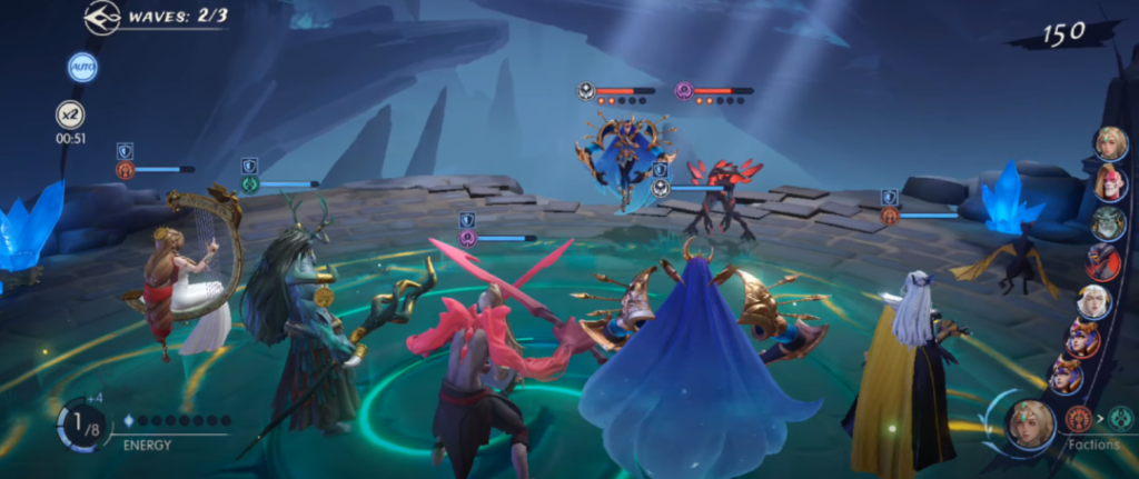 游戏玩法算不上革新,队伍中的5名角色共用一条能量条,对于技能释放需要有合理的策略安排。整体游戏的理解门槛不算高,魔幻类的题材和美术风格预计都是面向欧美玩家。